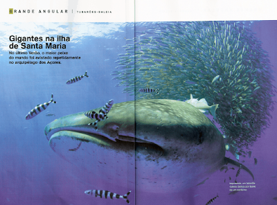 publica uma reportagem sobre os tubarões-baleia que foram avistados este verão ao largo da ilha de Santa Maria - Açores.