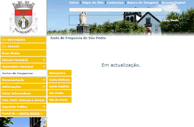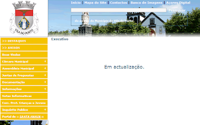 Conforme apresentado através de informação escrita (relatório) à Assembleia Municipal de Vila do Porto, o actual elenco camarário, nesta fase inicial de mandato, tem-se mostrado bastante interventivo em alguns sectores. No entanto, pese embora toda a actividade desenvolvida nos últimos meses, penso ser inaceitável a contínua inexistência de informação actualizada no portal web da autarquia.